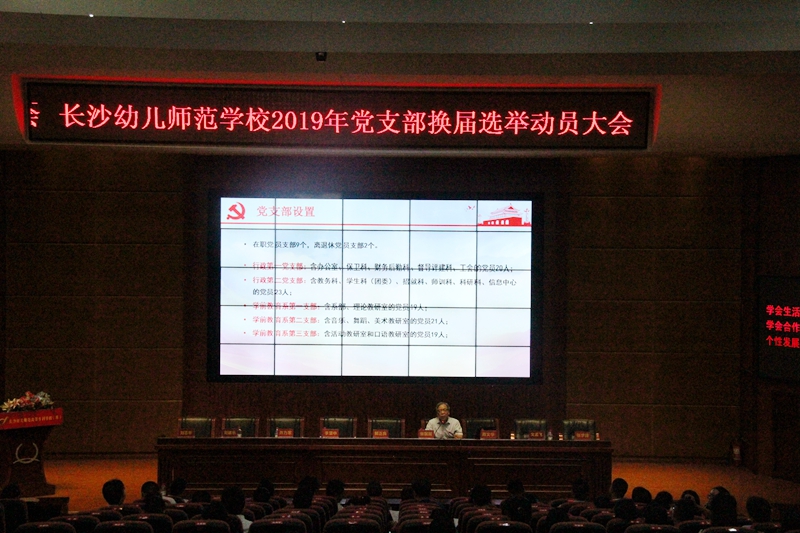 9月10日,长沙幼儿师范学校召开2019年党支部换届选举动员大会,全体党员参加会议。会议由党委书记张国斌主持。