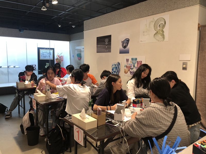 师生一到萨摩切子——玻璃工艺品制作工厂,在导游的安排下🚺👨‍🏭,迫不及待地开始了“玻璃风铃”工艺品的制作!孩子们手捧小巧风铃👱,精心描画着。有的描花草树木🏃🏻‍♀️‍➡️,有的绘心仪动物;有的写上美好的祝福,有的寄托美丽的愿景。其认真执着、全神贯注之程度,感动着在旁的日本友人!