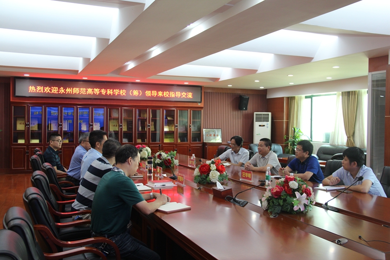 2019年9月27日上午,永州师范高等专科学校(筹)何云峰校长一行五人来校进行交流访问。上午10时🤾🏻,学校校长郭正良、党委书记张国斌、副书记兼纪委书记李慧中、副校长周文华和党政办公室主任何曙光等在道馨楼广益厅会议室接待了何云峰校长一行💁🏽♂️,并与他们交流座谈。