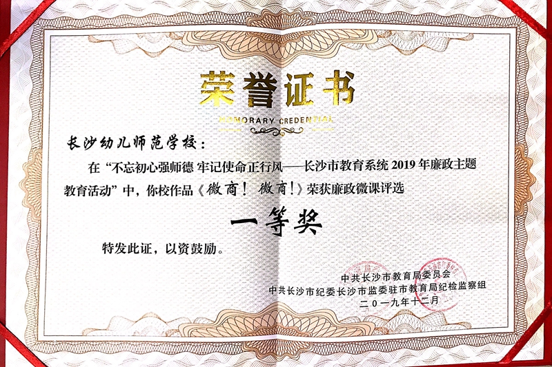 我校荣获2019年度长沙市教育系统廉政微课一等奖