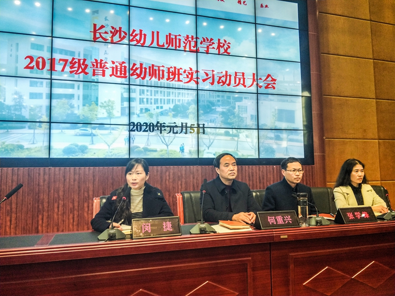 2020年1月5日,我校举行2017级普通幼师班实习动员大会,校长助理兼教务科科长张学锋🧑🏿🍳、招就科科长何重兴、学生科副科长彭繁珍、学前教育系副主任闵捷出席会议👨🔬。