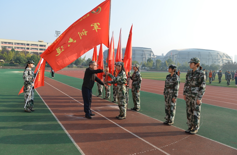 仪式在庄严的升国旗仪式中拉开序幕🏋🏼♀️,伴随着嘹亮的国歌声,鲜艳的五星红旗迎着朝阳冉冉升起,全体人员肃然向国旗行注目礼🙆🏿。随后,学校党委书记张国斌向8个新训连授旗🌆。