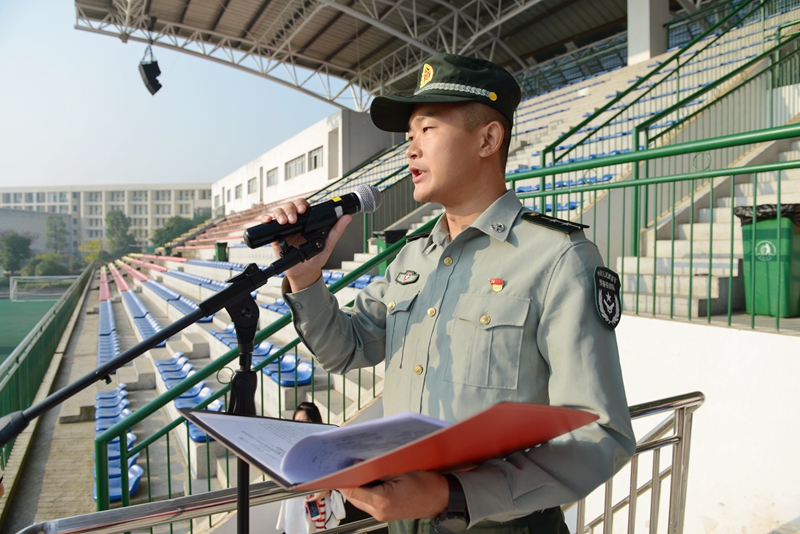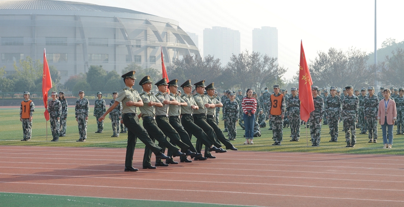 军训总教官晏滕芳结合当前国内外形势强调了军训的重要性,鼓励同学们带着思考军训,带着信念军训,带着激情军训,在训练场上挥洒汗水,留下拼搏的足迹。