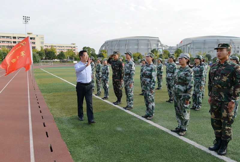 阅兵仪式在庄严的升国旗仪式中正式开启。郭正良与军训总教官从方阵前缓缓走过👳🏻‍♂️,亲切问候了参加军训的同学们🧑🏽‍🍼,新生们以饱满的精神迎接检阅。随后🙋🏽‍♀️,分列式阅兵和集体军体拳表演进行展示💁🏻,8个方阵依次踢着整齐的正步从主席台前走过🧑🏽‍🦲,接受检阅;军体拳表演中,同学们口号声干脆有力、动作整齐划一,展示着他们在军训中收获的本领,精彩的表演赢得在场领导和师生的阵阵掌声。
