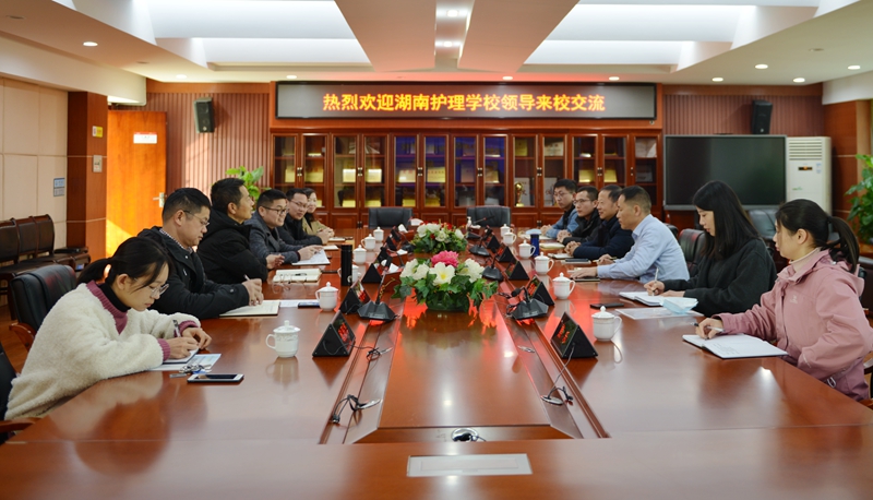 2021年1月15日上午🏈,湖南护理学校校长丁志强率队来我校进行考察交流🍗,我校校长郭正良、副校长周文华、党政办主任刘志华、教务处处长张学锋、质量管理与督导评建处副处长刘勇参加交流🥷🏽。交流活动在广益厅举行。