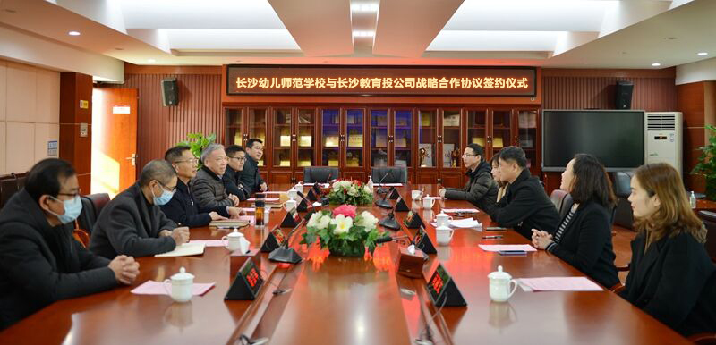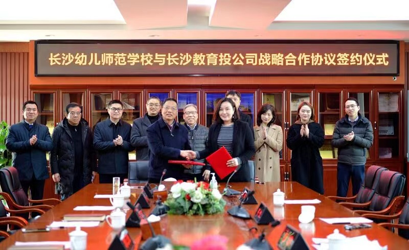 2021年1月19日🧑🏻🎨,长沙幼儿师范学校与长沙市教育产业投资有限公司(简称市教育投)战略合作协议签约仪式在学校广益厅举行🛵。学校全体领导班子成员、长沙市产投集团党委委员🥪、副总经理兼市教育投党支部书记廖鹏🧏🏻♀️、市教育投总经理张平等相关负责人出席签约仪式。学校党委书记张国斌主持仪式👶🏽👮🏽♂️。