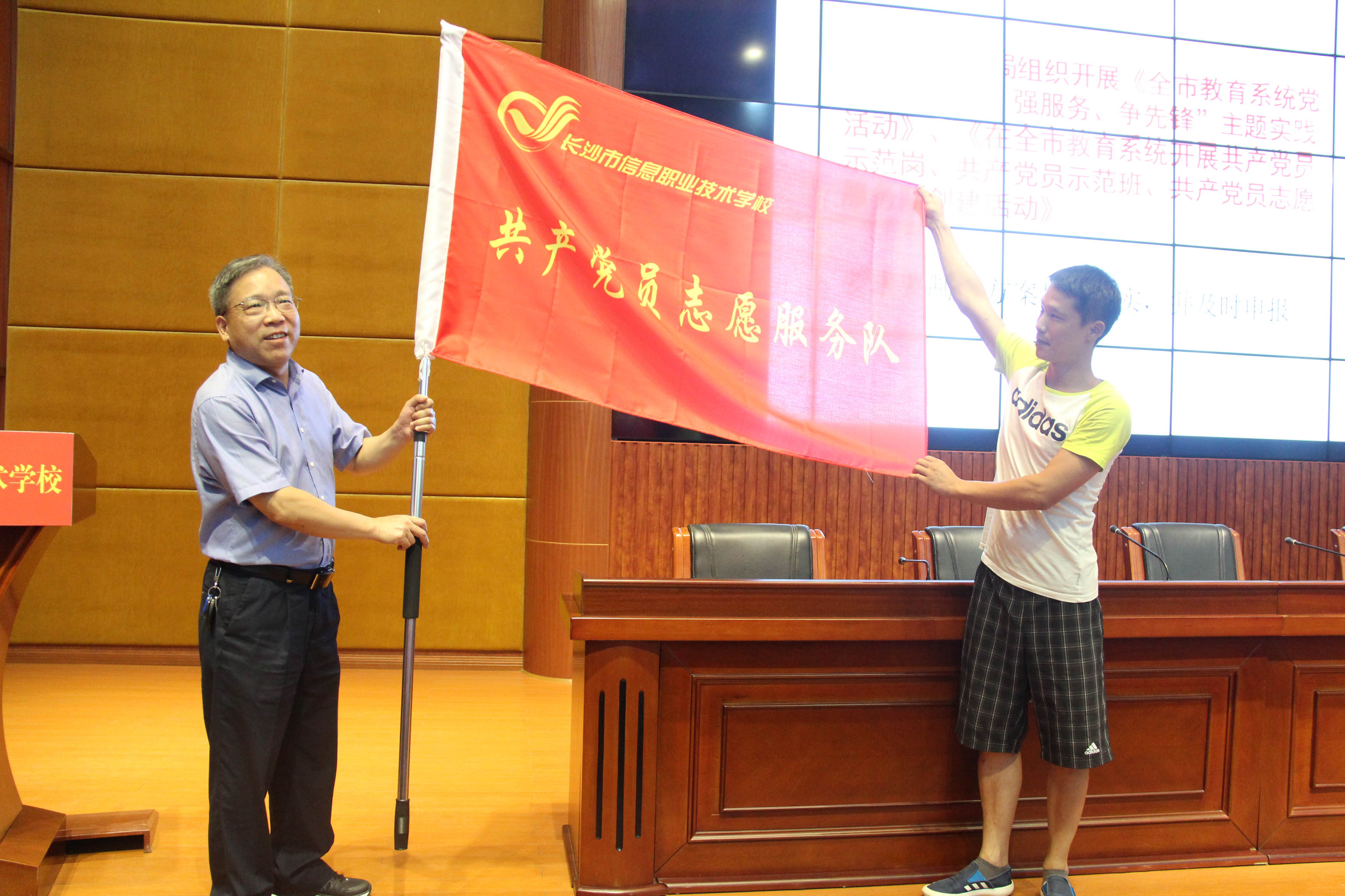 张国斌宣读了《关于成立2017年度“共产党员志愿服务队”的决定》并授旗🎾。学校党委还组织召开了2017年度共产党员志愿服务队工作动员会,张国斌强调组建“共产党员志愿服务队”旨在进一步强化党员的身份意识、服务意识🧑🏻‍🤝‍🧑🏻、先锋意识,充分发挥党员的先锋模范作用,推动学校党建工作迈上新台阶🍆。