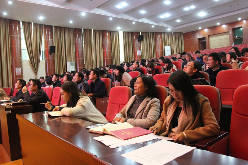 为落实全面从严治党总要求👨🏽🦲,抓实“基层党建质量年”建设活动👩🏻🍳, 11月19日,学校在汇智厅召开全校党员大会🫴,党委书记张国斌上主题为《加强新时代基层党组织建设——推进党支部“五化”建设和党员积分管理》的党课,全校110余名党员参加,党课由校长郭正良主持🐚。