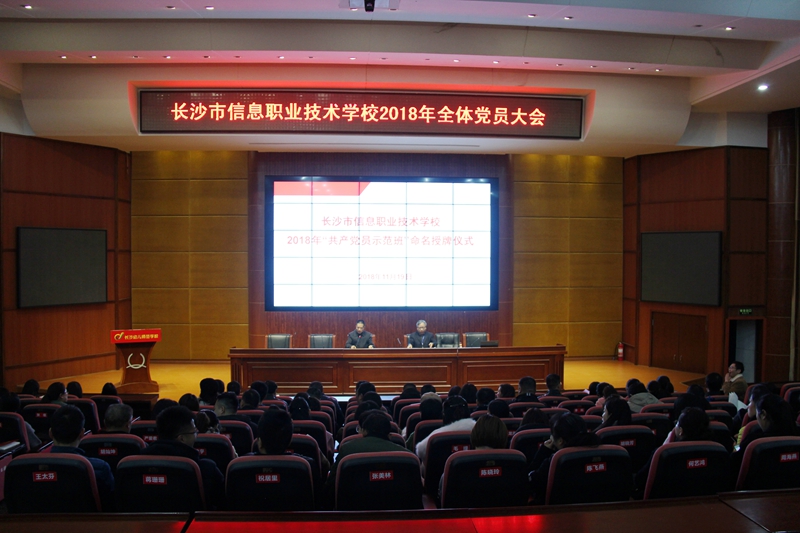 大会还举行了2018年度“共产党员示范班”命名授牌仪式,向1701班、1705班、1708班和1713班4个党员示范班主任授牌。