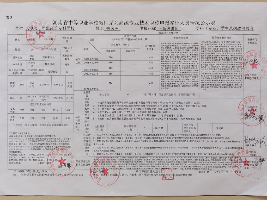2022年度中职教师系列正高级职称申报参评人员情况公示