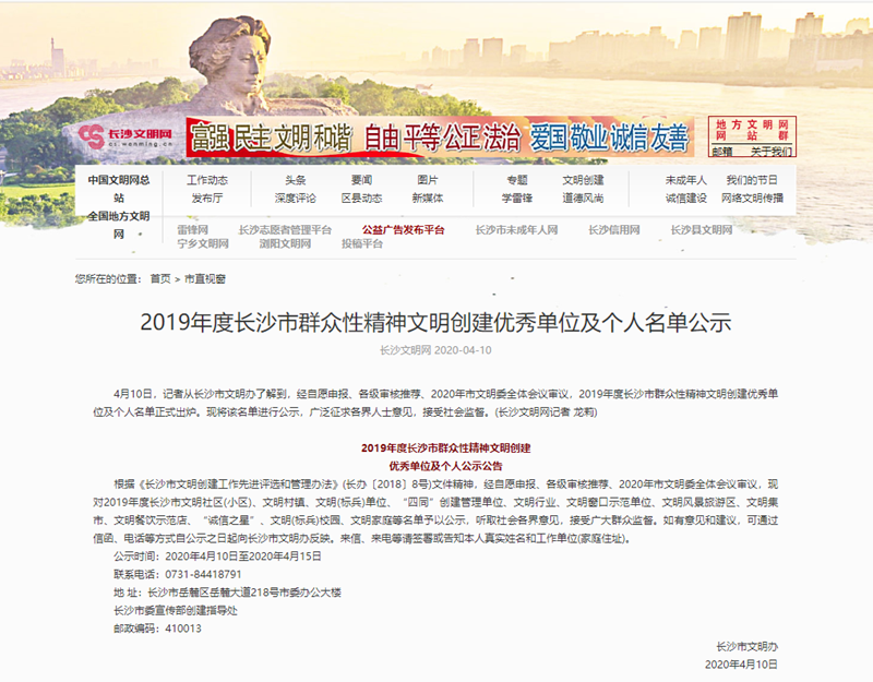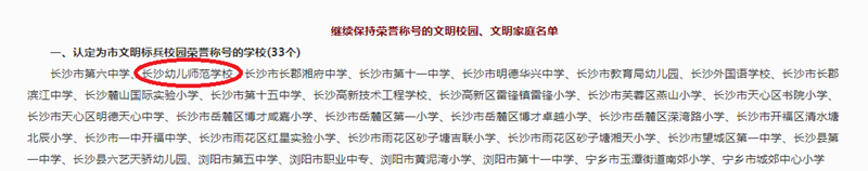 日前,长沙市文明办对外公布2019年度长沙市群众性精神文明创建优秀单位及个人名单公示,长沙幼儿师范学校榜上有名,被认定为“市级文明标兵校园”称号🐗🙍🏻。
