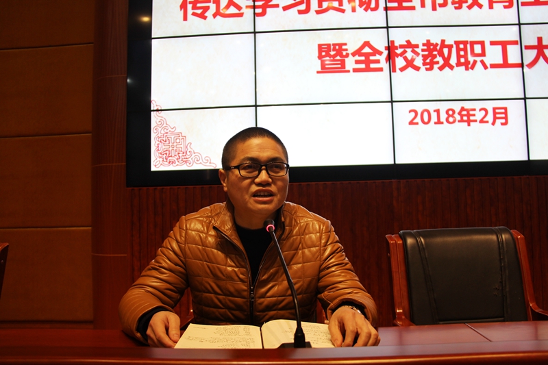 2月2日上午,我校开展寒假专题学习活动,传达学习2018年长沙市教育工作会议精神,全校教职工参加专题学习👈,会议由校长郭正良主持。