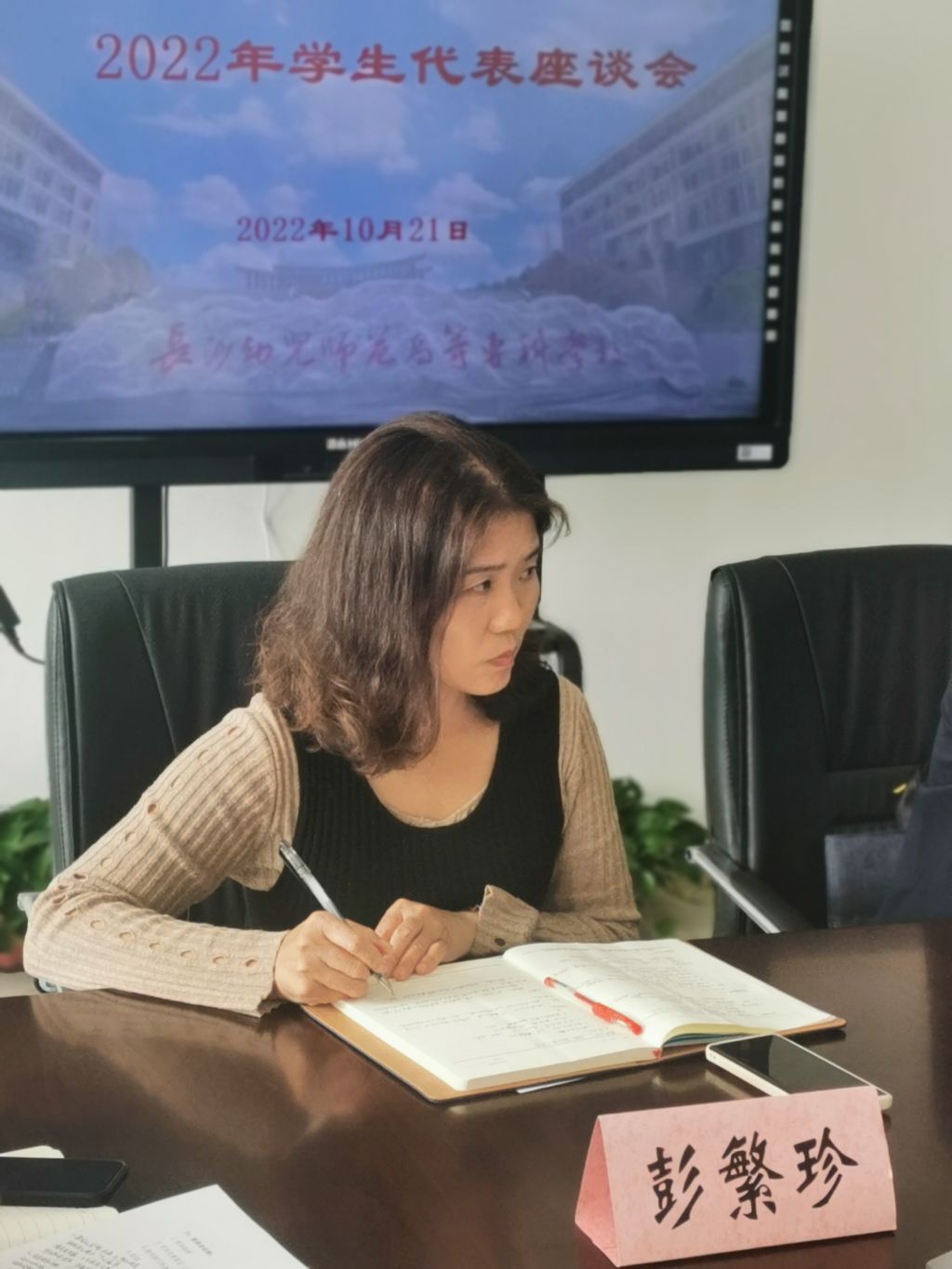 彭繁珍就座谈会的目的及流程安排做了详细的介绍,各二级学院的学生代表相继进行了发言,相关部门负责人对学生提出的有关学生活动室、宿舍水电👨🏻🍼、窗帘安装、故障报修、校园共享车投放、超市价格等生活及学习等方面的问题进行了及时回应,将学生提出的合理性建议形成整改清单,后续将进一步加强跟进落实。