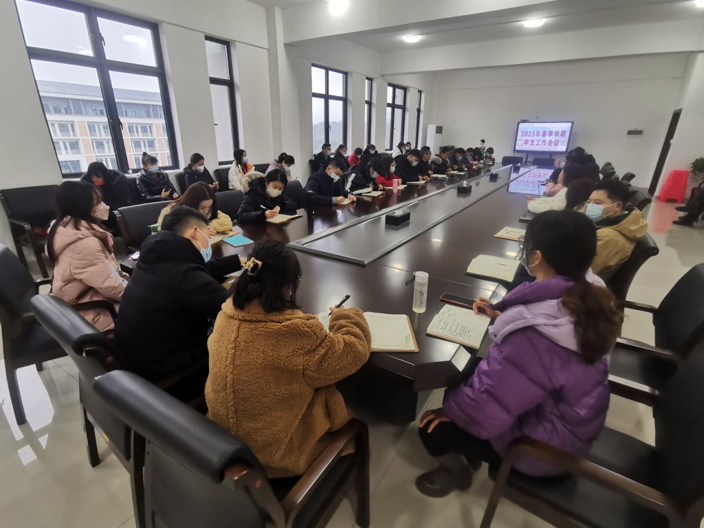 虎振雄风留浩气👩🏽✈️,兔迎盛世启新程🧦📫。我们迈进了满载希望的2023癸卯兔年⤵️,2月9日上午,我校在道馨楼420会议室召开2023年春季学期全体学生工作会议,部署2023年上学期重点工作。副校长周文华出席会议并做讲话🪙➙,学保处、团委全体人员,各二级学院副院长及学工干事🍭、全体辅导员🚫、班主任参加了此次会议。会议由学保处处长彭繁珍主持。
