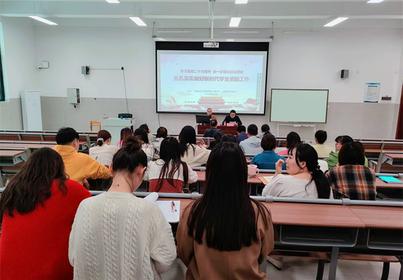 讲座主要从学习贯彻党的二十大精神、明确新形势下学生资助工作的新任务和新要求、扎扎实实做好新时代学生资助工作和争当新时代学校优秀资助工作者四个方面来谈。杨昌江表示,学生资助工作要在学校党委的领导下,强化“四个意识”,坚定“两个维护”,着眼人民群众的需求,要认真把握政策,创新工作方法,提升管理水平,推动资助工作高质量发展。