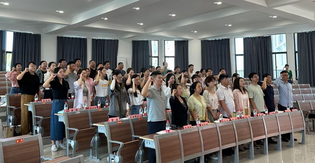 全体领导及老师们齐奏国歌后,辅导员代表易能干带领全体辅导员进行集体宣誓。随后学保处处长彭繁珍宣读关于成立第二批校级辅导员工作室的决定文件,李毅分别为“明志铸魂”“引领创新创业”两个校级辅导员工作室进行授牌,工作室主持人银伶老师作为代表进行了发言,她表示一定会合理规划好辅导员工作室的发展,逐步完善平台建设、充分发挥平台功能,为我校辅导员发挥榜样示范作用。