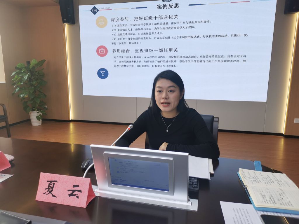 在经验交流会上,银伶老师围绕“职业规划和就业创业指导能力”分别从如何开展职业生涯规划工作🤯、辅导员开展职业生涯规划工作注意问题等方面做了详细的分享。她提到创新创业的种子要及早埋下➗、要及早激发,要多练多闯,才能实现就业择业与创新创业相互融通;夏云老师围绕“班级管理”实际工作案例分别从案例背景📓、案例分析、问题解决、案例反思、经验分享等五个方面强调班干部队伍在日常班级管理与服务工作中的重要性。她提到要遵循学生干部的成长与蜕变的规律,要注意深度参与、养用结合、提升激励,加强干部培养过程,学生干部的培养是一项长期、系统的历程。