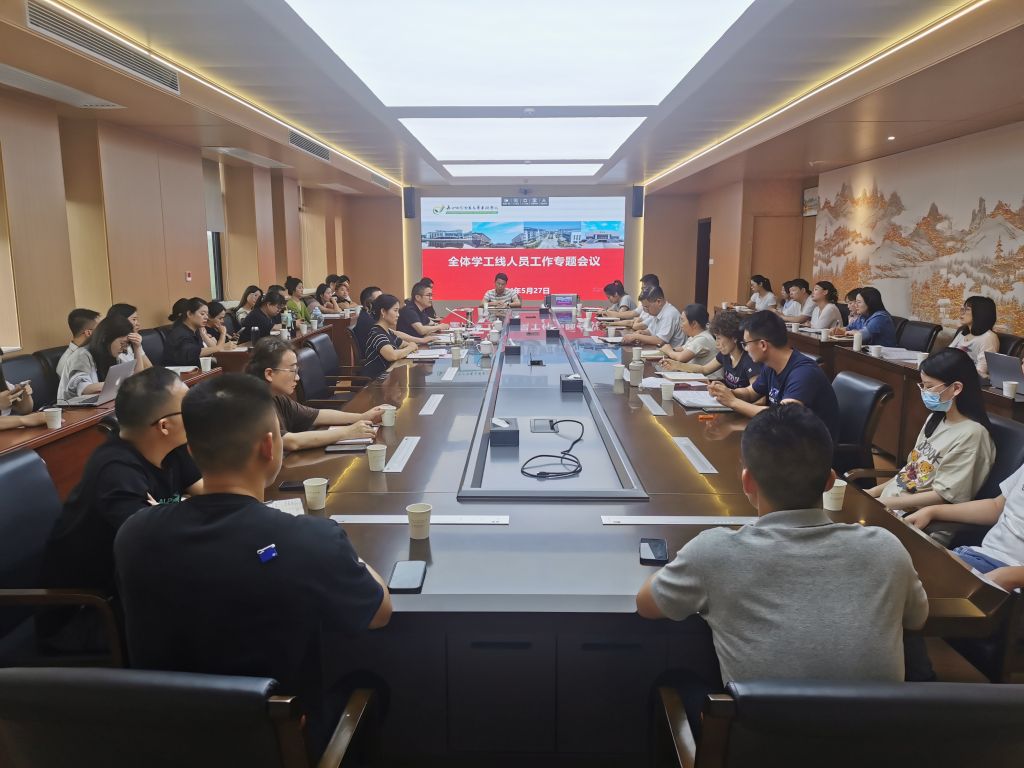 为进一步推进学生工作的全面发展,提高教育服务质量,5月27日下午🎅🏽,学工线人员工作专题会议在道馨楼420会议室召开🤙🏻♎️,校长李毅、副校长周文华出席会议,学保处🧑🦯、团委全体成员🦜,各二级学院党总支书记🪐、副院长、学工干事⚀🍋,全体专兼职辅导员参加会议,会议由周文华主持🚶♀️➡️。