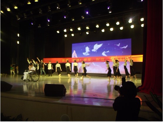 在期间的文化展示活动中,各校纷纷呈现了独具特色的节目。长郡中学交响乐团演奏的《红旗颂》气势磅礴,长铁一中、长郡健美操队表演的健美操活力四射、21中表演的《因为有你》音乐剧声情并茂的,极视听之娱、文化之陶。我校以1105班学生王薇盛被确诊为骨癌截肢后学校领导、老师和同学从学习、生活、精神上给与关心和帮助的感人故事为原型,创作并表演了情景剧《舞动的生命》。舞台上祝居里老师和学生投入的表演,配以音效逼真的背景音乐及舞蹈演员恰如其分的烘托,令观众一次次被感动,获得了在场领导和观众的一致好评。