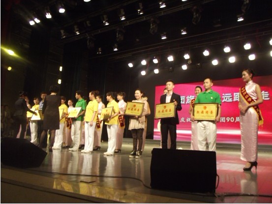 大会由长沙市信息技术学校李希尔老师和岳麓一小吴虎强老师主持。会上,长沙市教育局局长王建华对大会致辞,他指出,广大团员青年要进一步认清新形势,明确新任务,进一步弘扬“五四”优良传统,自觉肩负时代重任,积极投身于教育改革和发展的伟大实践中去。教育局工会主席陈仕强主席宣读表彰了决定,一批先进集体和先进个人受到表彰。其中我校团委被评为五四红旗团委、1011班和1109班团支部被评为五四红旗团支部、纪委书记李深山获得团队工作最佳支持奖、周曦被评为优秀共青团干部、杨林被评为优秀青年岗位能手、丁丽和蒋珊珊获得团队工作最佳支持班主任奖、陈鸿嵩等5人被评为优秀学生团干部,黄健等20人被评为优秀学生团员。最后教育局党委书记王小平代表局党委向全市教育系统广大共青团员致以节日的问候,向受到表彰的先进集体和个人表示热烈的祝贺。并以“信仰”为主题号召广大团干部要夯实青年群众基础,搞好组织保障工作,树立服务青年意识,做好党联系广大青年的桥梁和纽带,团结带领青年积极拼搏,以实际行动纪念中国共产主义青年团成立90周年,以优异成绩迎接党的十八大召开。