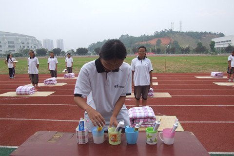 新生叠被子比赛现场 各选手整装待发
