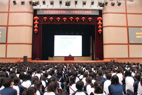 2013年9月6日下午,长沙市信息技术学校(宁乡师范)二、三年级学生入学教育活动在学校汇美馆隆重举行。出席本次活动的有校长助理兼学生科科长周文华、保卫科科长熊石林、教务科副科长王威、团委副书记兼学生科副科长周曦,二、三年级全体班主任以及1800余名学生。