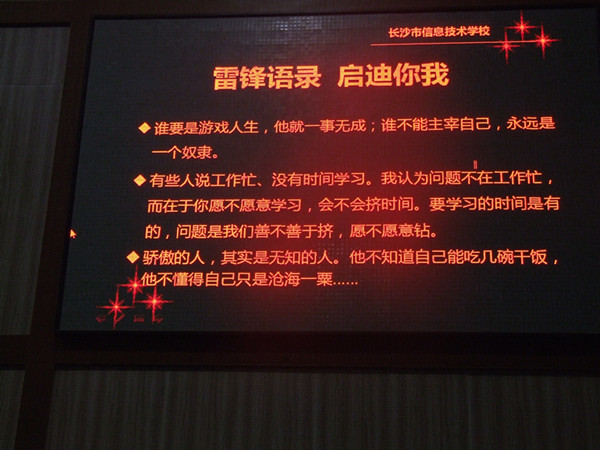 为了进一步学习雷锋的光辉事迹👳🏻,学习雷锋在学习上的“钉子”精神,学习雷锋遇到困难,不认输🤸🏽‍♀️,勇往直前的精神🏋🏼‍♀️🍉,彰显新一代中职生的精神面貌🏃🏻‍➡️🚗,2014年3月3日上午7:40,我校全体师生齐聚汇美馆参加升旗仪式。升旗仪式上,学生科银伶老师发表题为《做一个尚美的人》国旗下讲话。