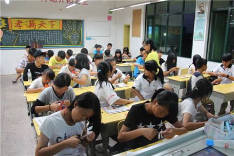 我校师生一同制作抗战胜利花