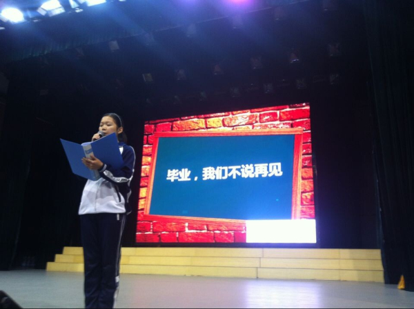 她代表三年级所有同学表达了对学校的感恩之情,感谢学校包容了她们的懵懂无知,感谢学校孕育了她们的睿智果断,感谢学校为她们提供了展示自我的舞台;感谢学校老师的辛劳付出,无私奉献,用自己的人格魅力潜移默化地感染着她们。