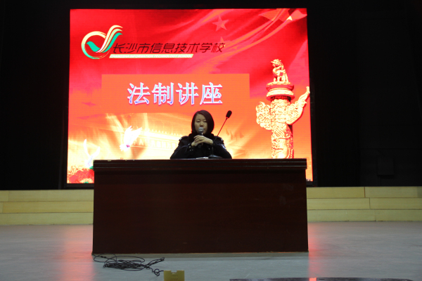 为了营造我校良好的法制氛围,增强同学们“学法、知法、守法”的法制意识,学会利用法律进行自我保护,做一个知法守法、自尊自强的好学生。 12月10日,我校全体学生齐聚汇美馆,认真听取湖南省女子监狱警官谢念雅给我们带来的一场生动精彩、意味深长的法制教育讲座,本次活动由学生科陈郁科长担任主持。