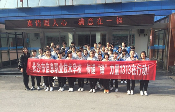 3月27日下午,长沙市信息职业技术学校1313班全体学生开启了《传递“锋”力量1313在行动》的敬老院爱心之旅。此次活动由该班级同学自己组织策划,并利用寒假对长沙市第一福利院进行实地考察之后而展开的。