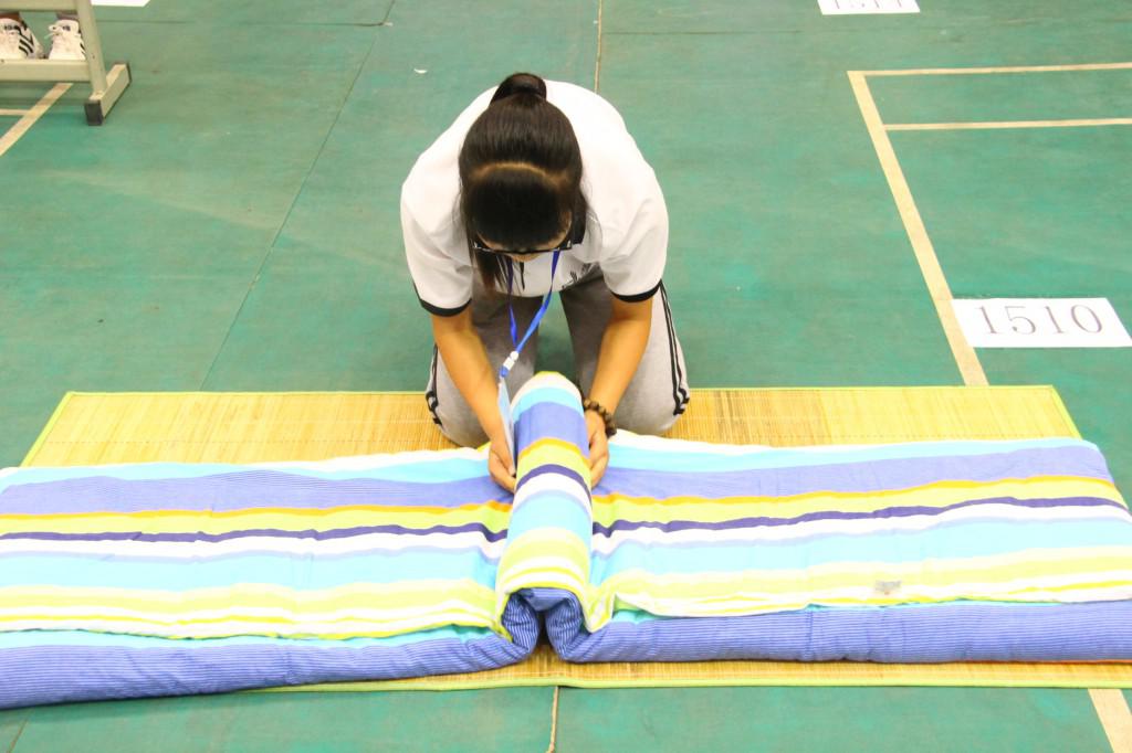 比赛分为三个环节🧜♀️,首先是个人叠被子比赛,新生班级每班推荐一名叠被子优秀的同学参赛,限时一分钟,以时间结束后被子情况为评分标准🧔;其次是集体内务比赛,比赛模式为五人进行接力赛(四人叠被子接力🤞,最后一人进行漱口杯摆放)🧙🏿,哨响后比赛开始🚨,以比赛以时间最短以及结束后被子和漱口杯情况为评分标准👩🏽🏭;最后是由学导展示内务整理风采。