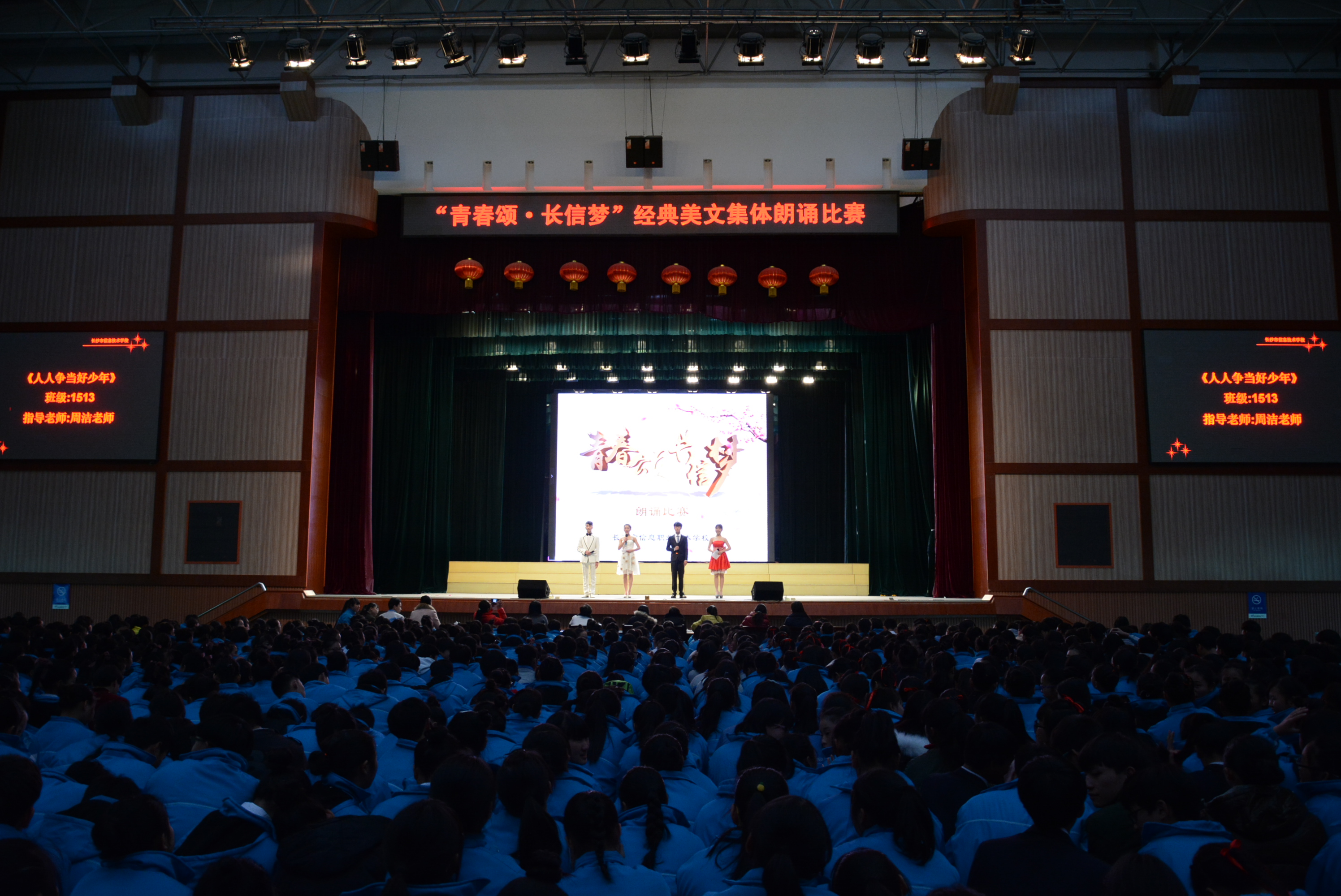 礼赞青春,唱响长信。2015年12月16号“青春颂,长信梦”经典美文集体朗诵比赛在汇美馆隆重举行。本次比赛由播音主持技能队选派优秀学生担任主持💂🏿♂️,由学校口语组专业老师担任评委,分为低年级组和高年级组两场.