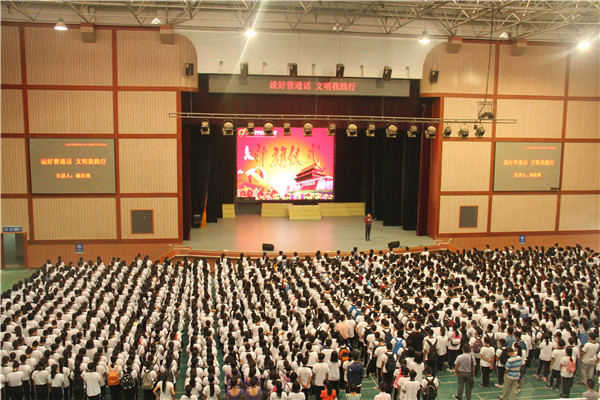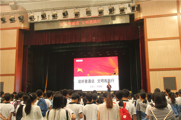 2016年9月8日至14日正直第19届宣传普通话周,9月12日清晨📻🚂,全校师生齐聚汇美馆参加由杨祖爽老师围绕“推普周”主讲的“说好普通话 文明我践行”升旗仪式🐭👨🏼🎨。
