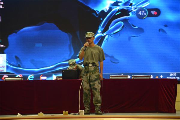 8月27号是军训的第二天👨🏽🦱🏌️,晚上学校在汇美馆举办了国防知识教育讲座🙇♂️。尹兆富🧔🏿♂️,汪小渫两位教官主讲🛜,2016级全体新生参加🏸。