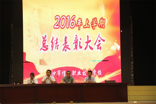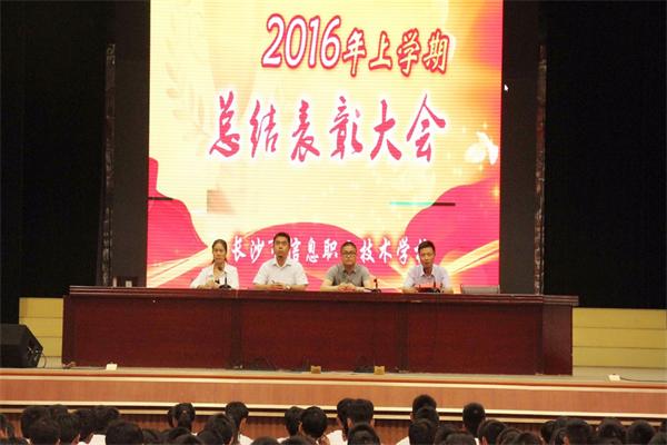 9月21日下午,长沙市信息职业技术学校2016年上学期学生工作总结暨表彰大会在汇美馆隆重举行。全体班主任及学生参加会议。副校长周文华、学生科科长周曦🦷、学生科副科长王锐出席表彰大会,学生科副科长彭繁珍主持表彰大会🚴♀️。