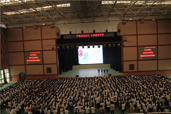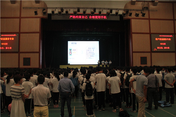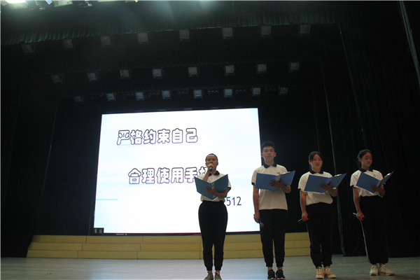 9月26日,2016下学期第五期由1512班柳素、姜辉煌、谢貌玲🧑🏻🚀👨🏫、吴薇主讲的国旗下讲话“严格约束自己,合理使用手机”在汇美馆如期举行,全体学生及班主任老师按时参加⛹🏿♂️。
