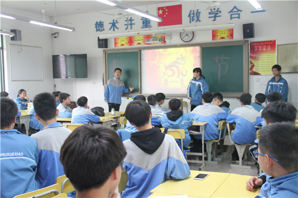 爆竹声中一岁除🔮,春风送暖入屠苏🙅🏼🚝。为了让同学们了解更多春节知识,本周三组织开展了《春节的那些事》主题班会🔼。1405班的“我最会说”和1408班村晚的祝福语“成语接龙”无不反应了春节的习俗;1507班通过进行“春节里有哪些习俗”知识抢答💂,让班级同学更好地了解了新年中的过节习俗; 1618班 通过设置“红包墙”,不仅形式十分新颖,还极大地调动了班级同学参与活动的积极性,活跃了现场气氛;1515班就“年味有么有变”的话题进行讨论;1504班、还请同学讲述了土家族、汉族、侗族的过节习俗,让班级同学了解了少数民族的春节风俗习惯;1511、1406、1512班同学则通过游戏形式,互相交流了彼此之间的过节趣事;1612班同学通过讨论有关春节的对联、诗句,增强了同学们的语文知识积累;1513班《年夜饭》情景剧的表演贴切又幽默;1508、1517班同学通过观看视频,了解到了在外游子对过年的印象,让人感同身受👩🏽。1501班开展了“春节里最尴尬的事”主题讨论🤾🏿♂️,让人忍俊不禁。本次班会各班都开展的有声有色,每个班有着各自的特色🎐,但是出发点都是相同的——希望同学之间多加交流,增进友谊,并扩展视野🧖🏽♂️,增加知识面。