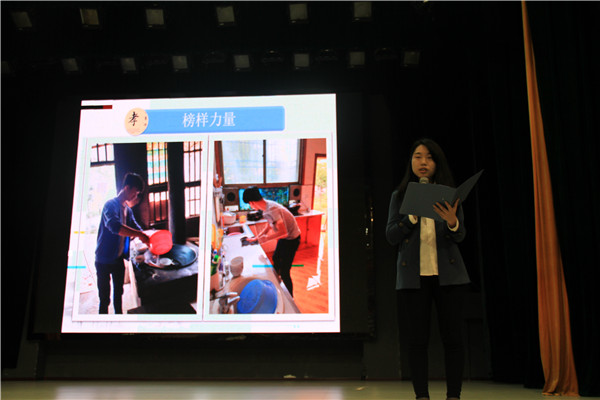 随后,1618班班主任黄丽芬老师,总结了上周对全校发出了360份问卷中,同学们对“孝行”这块的认识与现状,并列举了身边孝行的榜样,并期望大家遇事多理解一下父母,多为他们考虑一下。
