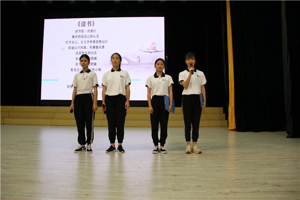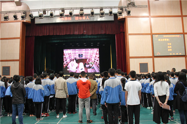 4月24日早,全体师生齐聚在汇美馆参加由1503班主讲,以“诗书养性,读书育人”为主题的国旗下讲话。