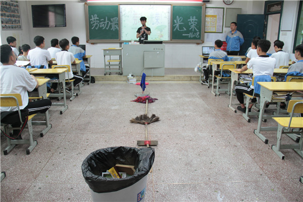 每个班都非常认真的准备了这次班会,例如:1403班、1501班通过深情投入的诗朗诵,歌颂出劳动者的辛勤付出,让同学们认识到劳动的作用;1504班、1607班围绕“身边的劳动模范”这个话题,分享我们身边的劳动模范,并且倡导我们要热爱劳动;1609以小组讨论的形式,让同学们更深刻的了解劳动最光荣的意义;1510班观看视频“环卫工人的一天”让同学们认识到环卫工人的辛苦,呼吁我们要关爱环卫工人、爱护环境,做一个有素质有礼貌的公民;1611班开展激烈的游戏活跃气氛,从中认识劳动的重要性。