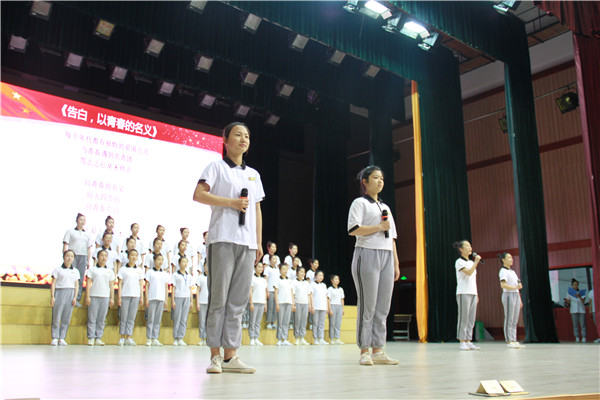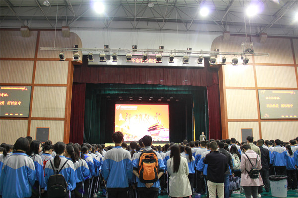 5月8日早,我校全体师生齐聚在汇美馆参加1403班主讲的“不忘初心跟党走”国旗下兼入团仪式。
