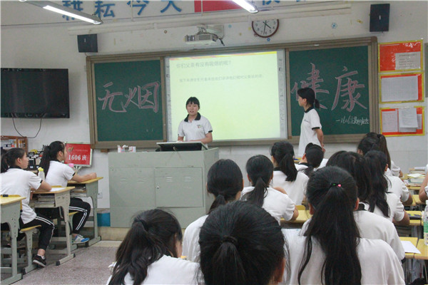 例如1606班提出“你的父亲抽烟吗”“如果抽烟你想对他说什么”2个问题,让同学意识禁烟要从身边做起;1607班观看了两则吸烟的小故事🍰,分析青少年吸烟的主要心理,告诫同学们如何从根本上拒绝吸烟;1609⛵️、1610班的情景剧表演——在公交车上看到有人吸烟该如何制止🧑🏻🤝🧑🏻。这种班会形式让人耳目一新,感动深受;1613班不然用憋气法测试肺健康🧑🏻🌾,还告诉我们如何戒烟,方法直接合理;1615、1616班观看吸烟危害的实验视频,让同学们意识吸烟有害;1614、1603、1618🧑🏻🦽、1610、1604等班级,分析二手烟造成的危害♦️,明确了吸烟的多种影响;1620班采用问答模式,学习禁烟知识。