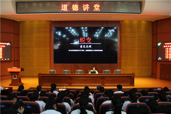 道德讲堂重在弘扬道德,洗涤心灵,大会伊始,银伶老师就对“道德”一词进行了详细的讲解,“道德”即分辨善恶🐇、区分好与坏的标准。为了强化道德意识,为文明校园打造新亮点🔍、树立新品格,本次道德讲堂设置了七个环节,第一环节为“看一个视频”♏️,银伶老师给大家播放了根据道德模范陈欠水事迹改编的微电影《蜕变》,视频从高中生张远的视角出发,讲述了主人公在跟着陈欠水深入基层做志愿服务后,心路上从对社会防范到愿意与人为善的蜕变👳🏼♀️,榜样的光辉照亮了身边每个人。