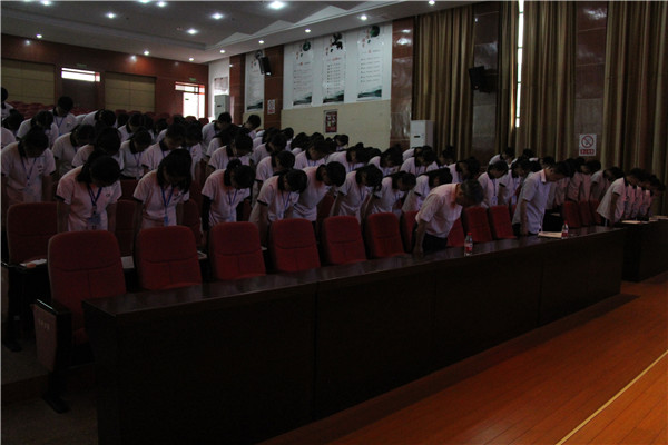 第三、四、五环节分别为“做一个反省”、“行一个大礼”和“宣一份誓言”🗞。“做反省”时沉思的三分钟,旨在希望同学们认识到自身不足🤹🏻😑,与人相处时🏌🏼,先自问“心坏没坏🏄🏽、偏不偏🧜、好不好”。然后全体师生崇德向善表诚敬🫱🏻👃🏻,面向“德”字60度深鞠躬🪓,接着大家一同宣誓《做一个有道德人》✝️,并表达愿将誓言变成道德承诺,彼此共勉。