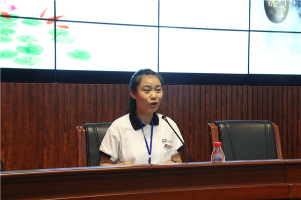 1605班张新悦在第二环节“学一个模范”时分享周美玲事迹