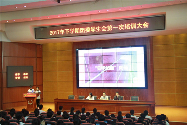 10月9日,阳光明媚,我校在汇智厅召开了2017年下学期团委学生会第一次培训大会🧏🏻‍♂️🚄,此次大会主题为“感恩·奉献·梦想·担当”,参加本次大会的有学校副校长周文华先生⏸、学生科科长周曦先生👩🏼‍🎤、团委副书记黄丽辉女士以及全体学生会成员💆‍♀️。