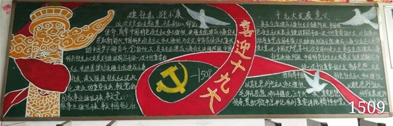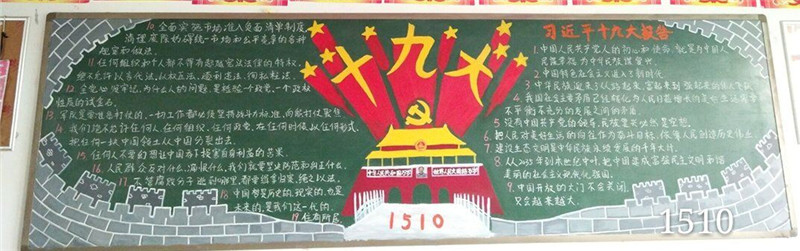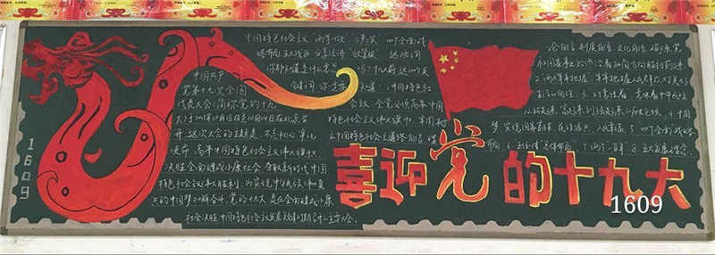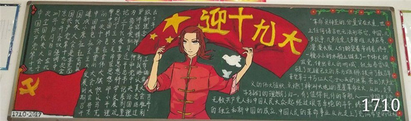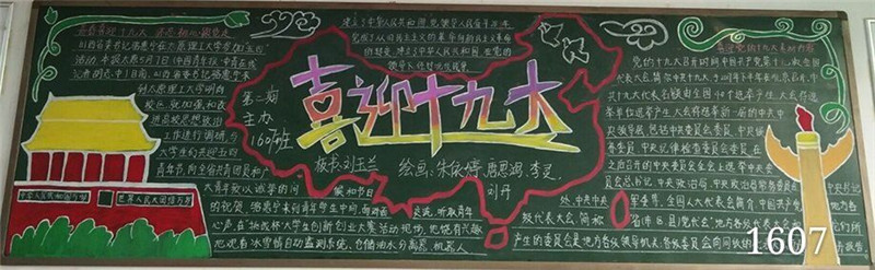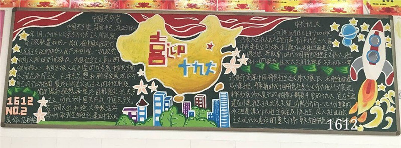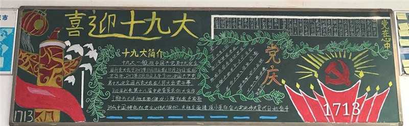 黑板报一直是我校进行文明宣传🙎🏻、教育的美丽风景线🤮。各班积极筹备,精心设计了本期黑板报。爱国主义教育、十九大知识都精巧的融入道板报之中。