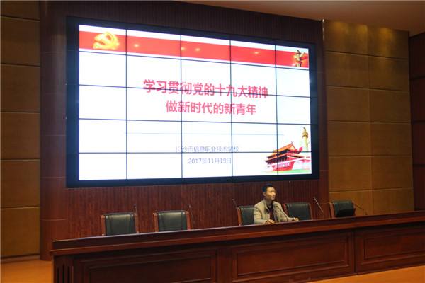 为了切实抓好学习贯彻中国共产党第十九次全国代表大会精神🏋🏼♀️,进一步在校内掀起学习宣传贯彻十九大精神的热潮,11月19日晚,学生科组织班主任在汇智厅集中学习党的十九大精神,学生科周曦科长作了《学习贯彻党的十九大精神 做新时代的新青年》主题讲座。