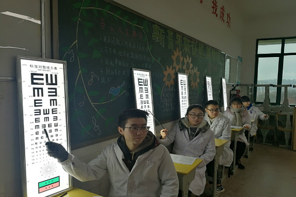本次教育活动分为全校学生视力体检和眼健康知识讲座。4日上午九点,长沙市爱尔眼科医院的医务人员就在德馨楼512#、513#布置场地🤮🙎🏽‍♂️,各班学生持已经填写好的《视力体检卡》有序的排队进行检查,在现场体检中,医务人员认真细致地对体检结果进行详细记录,同时还向一些学生提出了有针对性的合理眼睛保健意见。